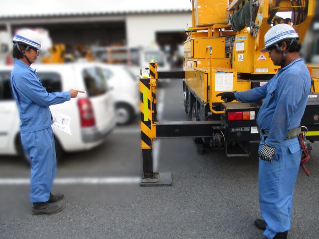 現場に向かう前にベテラン社員による入念な打ち合わせをし、日々の作業が安全に行えるよう努めています!